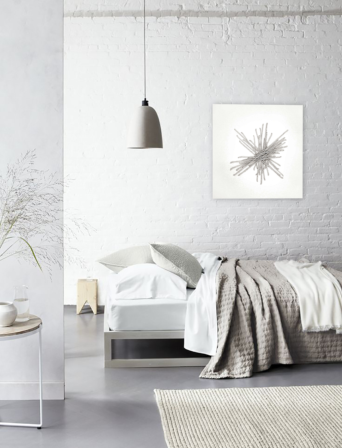 white acrylic, rope sewn on canvas _ 60x60 cm feasible in many colors with sizes from 30x30 up to 200x200 cm